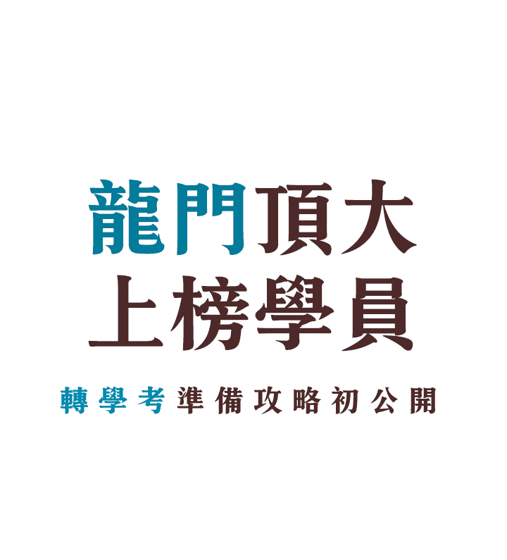 郭O瑄 轉學考考取:北大應外系榜首 研究所考取:政大企研所、成大國企所、中山企研所榜首 轉學考動機是在我指考還沒分發的時候就有的,而上了一間不如預期的大學更堅定了我的意志。 一開始和我接觸的是子策主任,和其他補習班的主任不一樣,他在乎的是學生需要什麼,他可以提供什麼幫助。因為他的原因,我在決定要考研究所的時候,沒什麼猶豫就回來找大碩補習。 第一次上傑瑞(曾世杰)老師的共同英文課,我就被震驚到,因為老師上課非常有邏輯且清晰。而傑瑞老師的英文作文課,每一篇作文他都會批改並在下禮拜還回,上面都有批註和建議,讓我們可以知道自己作文的缺點。 西概的部分,楊文(陳惠品)老師會依照每個學生的目標,不同學校給予不同的講義,讓同學不用花太多時間就可以獲得相關的知識。而且楊文老師也是和傑瑞老師一樣,同學essay寫幾題,他就改幾題。 王O雯 考取:陽明交大電機系、政大資管系榜首、成大資工系 考量到法律系與自身個性不合且出路太窄,專五時(約九月)決定轉換跑道,和我的專員子策副理討論後,決定專心準備資訊類轉學考。 非常感謝微積分David歐大亮(張博盛)老師,能感受到他對教學的熱忱,上課途中有問題皆可提問,老師都會努力讓學生懂得每個步驟,記得他說過:「不怕我教不會,只是怕你們不問!」 計概張逸(張崑)老師上課習慣學生寫筆記,對我來說,手抄能夠幫助記憶及理解。而另一個好處是方便複習,且最有成就感的就是上完一輪課可以得到一本專屬於自己的計概筆記! 鄭O敏 考取:台大外文系 會想選擇轉學考是因為五專畢業後的出路真的比較少,大部分選擇的升學道路不外乎就是升二技跟插大兩條路。 準備英文方面,真的要謝謝傑瑞(曾世杰)老師把文法解釋得非常清晰,學起來也非常容易,還有老師願意花許多時間幫忙修改作文及額外的歷屆練習題。 西洋文學概論的部分,真的感謝楊文(陳惠品)老師把各個時期作品的主旨、內容、人物等都講解得非常清晰,還補充了許多資訊加深印象。 黃O恩 考取: 政大經濟系榜眼 由於整個大二期間,我都專注於轉學考的準備,最終因此被北科退學了。然而,被退學的結果反而使我的決心更加強烈。我甚至認為退學成為我能順利轉學考上榜的一大助力,因為它讓我意識到自己已經沒有退路了,這迫使我更加專注於準備考試。 楊莉(楊采蓁)老師的教學步驟是循序漸進的,每一步都非常清晰易懂。轉學考經濟學會用到很多的圖形,而楊莉老師的圖畫得很好,也會按步就班地進行講解,而不是在台上自顧自地畫。在解題方面,特別是申論題,楊莉老師都會一直強調要寫到多詳細。幸好有老師的耳提面命,我這次政大經濟的四題申論題才能拿滿分! 江O陞 考取:台大心理系 因為科大土木系的上課內容、環境跟當初預期的有落差,於是我決定轉而探索其他有興趣的內容。在確立了對心理學的興趣後,大一下學期結束便決定休學一年爭取轉學考機會。 心統張璇(蔡丁禕霈)老師的課程安排循序漸進,詳細點出運用步驟,加上口訣及反覆練習加深記憶。課程初步階段有搭配小考以及作業,幫助學生頻繁接觸統計學科。 普通心理學的黃崴(黃采瑛)老師時常準備額外的講義,並且學生有疑問時能提出實例幫助學生了解概念,亦提供信箱聯絡。在接近考試的那段時間,撥出時間幫助學生練習模擬面試。 吳O婷 考取: 清大資工系、中興資工系榜首 起初我的成績很好、對學習有高度熱忱,只是待了一陣子後還是不滿意這個環境,加上個性不適合未來職業,所以決定嘗試無背景限制的轉學考。 David歐大亮(張博盛)老師的原則是絕不會叫學生死背,任何公式他都會親自推導一次,讓我們知道每個公式的原理,每個步驟是為什麼。最感動的是他從不會放棄文科生,任何怪問題他都願意細心解釋。 另外補習班考試頻率很高,可以從全省排名中檢視自己的程度在哪,這對好勝心極強的我來說增加不少動力,也因此認識幾位很棒的戰友,對自己越來越有信心。 莊O蓁 考取:成大心理系 由於我很晚才決定要報考心理系轉學考,因此報的課程幾乎都是以雲端授課為主。我幾乎是從五月才開始陸續看正課、題庫班的課程,所幸【龍門轉學考】的課程內容相當充實,也證明了只要把龍門的課程都修習完,成功轉學考上榜並不是毫無可能! 試聽課程的時候,我就被張璇(蔡丁禕霈)老師說話的有條不紊,以及對整個課程的掌控力所吸引。開始上課之後,儘管自己從來沒修習過任何統計相關的課程,但依舊被老師的自信感染,不太會有畏懼統計學的感覺。並且張璇老師對於課程進度安排是有系統且循序漸進的,講義也都整理得很清楚,讓我在課程中不會覺得被硬塞知識! 涂O瑋 考取: 台大經濟系 從110年考完指考,差一分上北大之後,就決定要考轉學考。我認為我算是起步得較慢,所以我花更多時間希望可以追上更早就開始補習的人的進度。在這段時間確實有時會想放棄,但只要想到一開始的決心就會更有動力繼續讀下去,經過這一年也在最後收穫到最甜美的果實。 我很喜歡楊莉(楊采蓁)老師的一點是她可以把經濟講的淺顯易懂,而且重要的地方老師也會反覆地強調,加強我們的印象。另外,楊莉老師講義給的題目量也相當多,只要充分練習,每一種的題型都不太會難倒你。對我來說,我認為自己是需要透過大量練習來加強學習的考生,選擇楊莉老師對我來