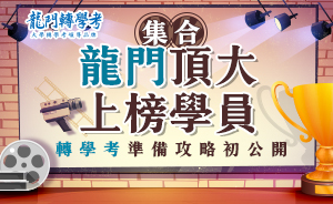 50年大學轉學考專家-龍門,輔導上千學員上榜國立頂大,轉學考榜單稱霸全國。現在就讓這些金榜學員告訴你頂大轉學考上榜的攻略,明年跟著龍門的腳步,你也可以寫下榜單新紀錄!